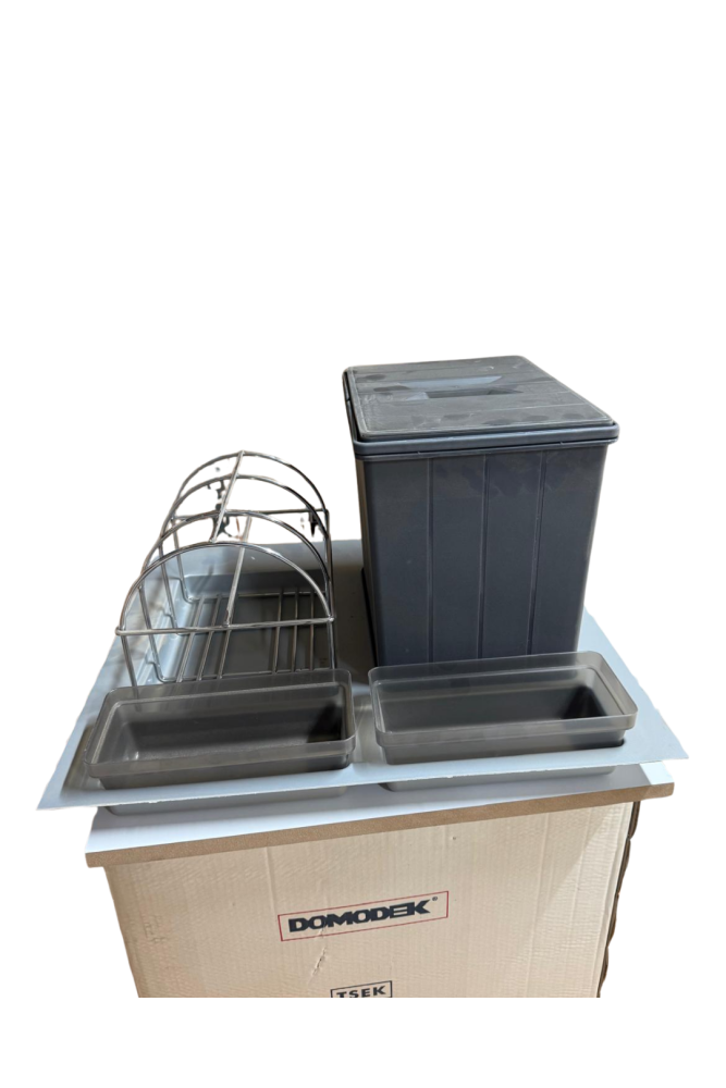 Çekmece içi çöp kovası  1 adet manuel kapaklı çöp, 1 adet deterjanlıklar için kromaj tel bölmesi, 2  adet evcil hayvanlar için atık kabı mevcuttur. yüksek  çekmeceler için uygundur.(minumum çekmece içi h= 38 cm olmalıdır) ürün sıfırdır kontrol için ambalaj açılmıştır. (ÖNEMLİ NOT; uzun süre depoda beklemekten kaynaklı ambalaj yazıları biraz silik olabilir)