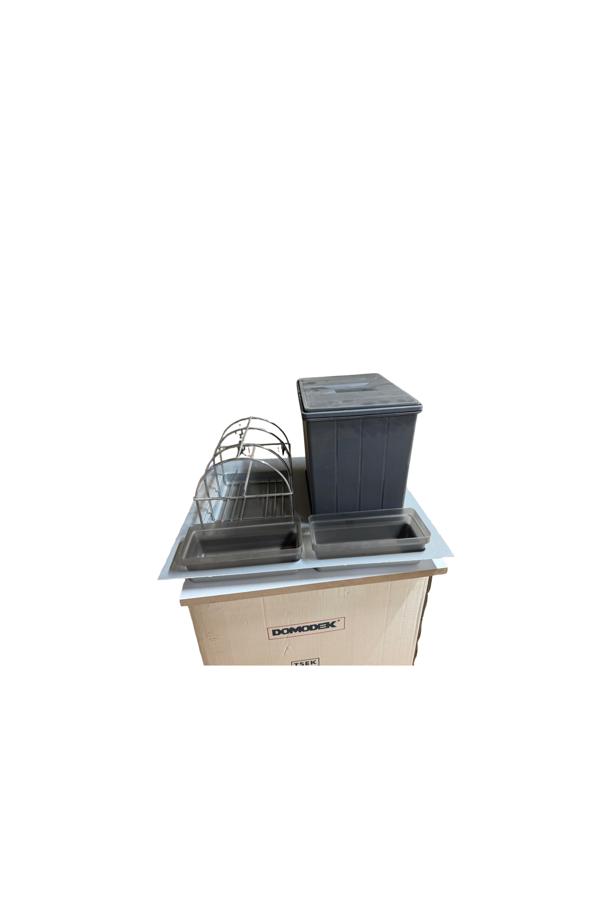 1 adet manuel kapaklı çöp, 1 adet deterjanlıklar için kromaj tel bölmesi, 2  adet evcil hayvanlar için atık kabı mevcuttur.