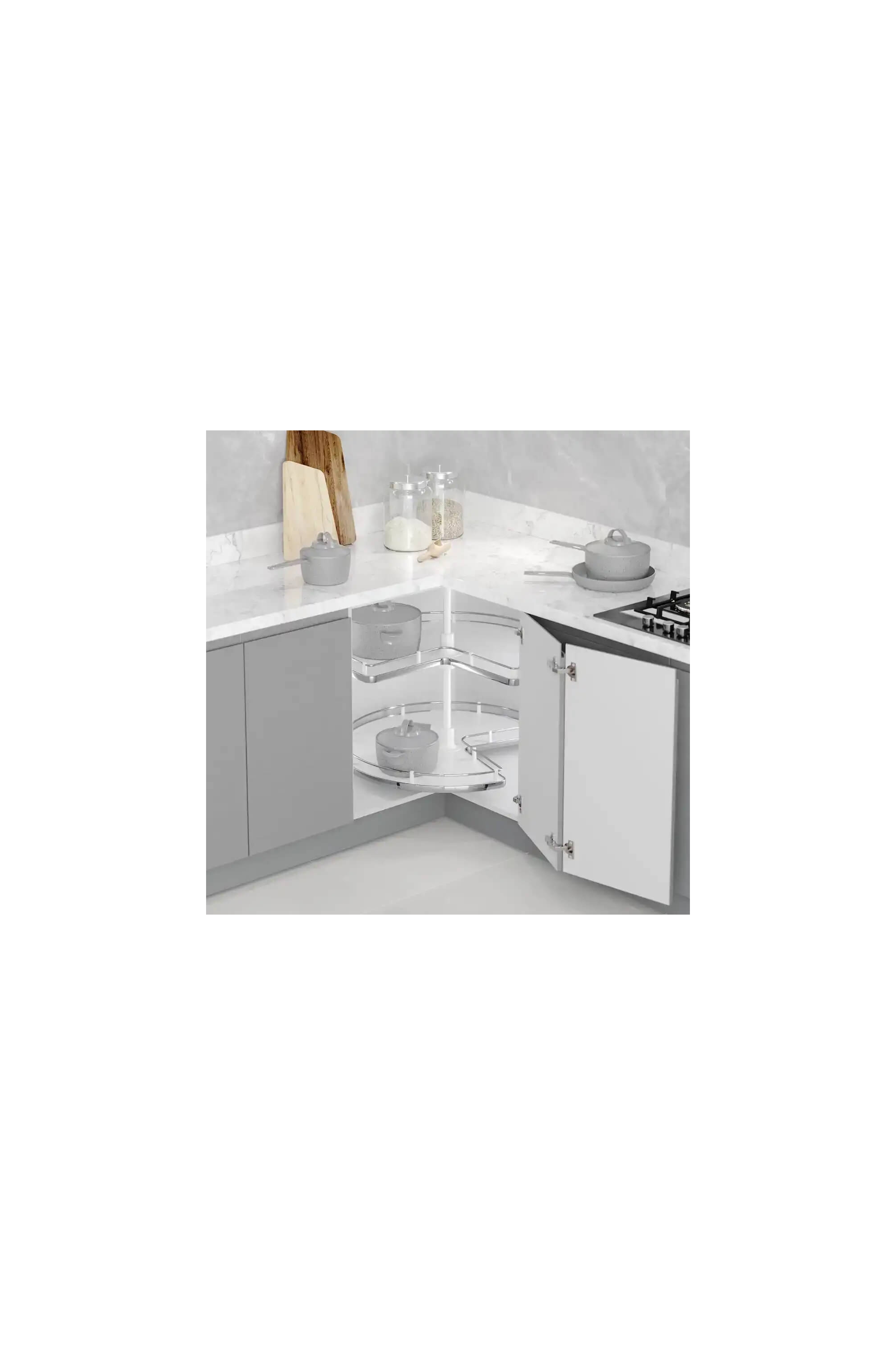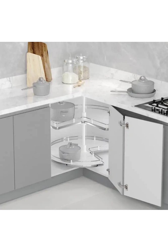 • Köşe dolaplarında, menteşeli iki kapak ile kullanıma uygundur.
