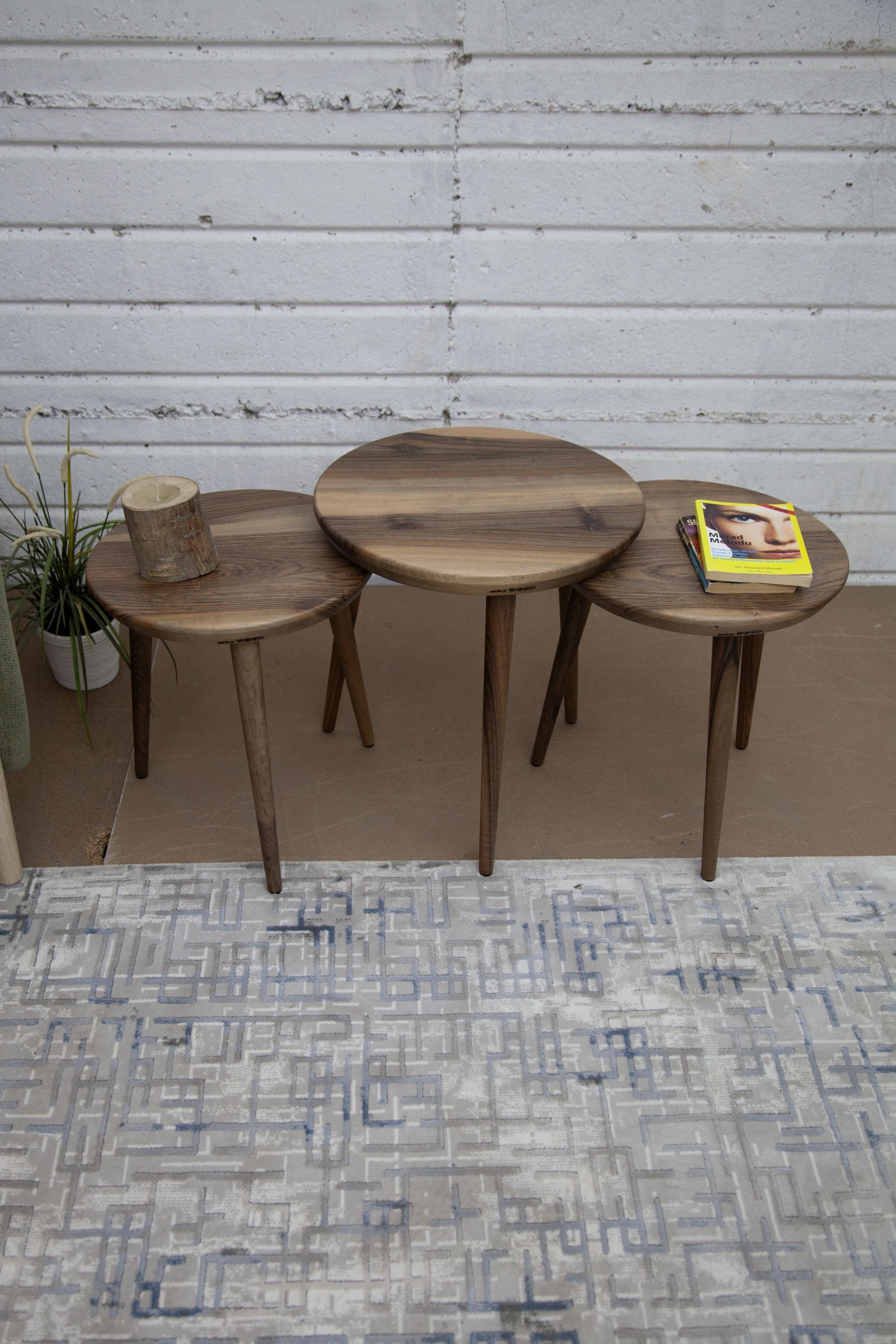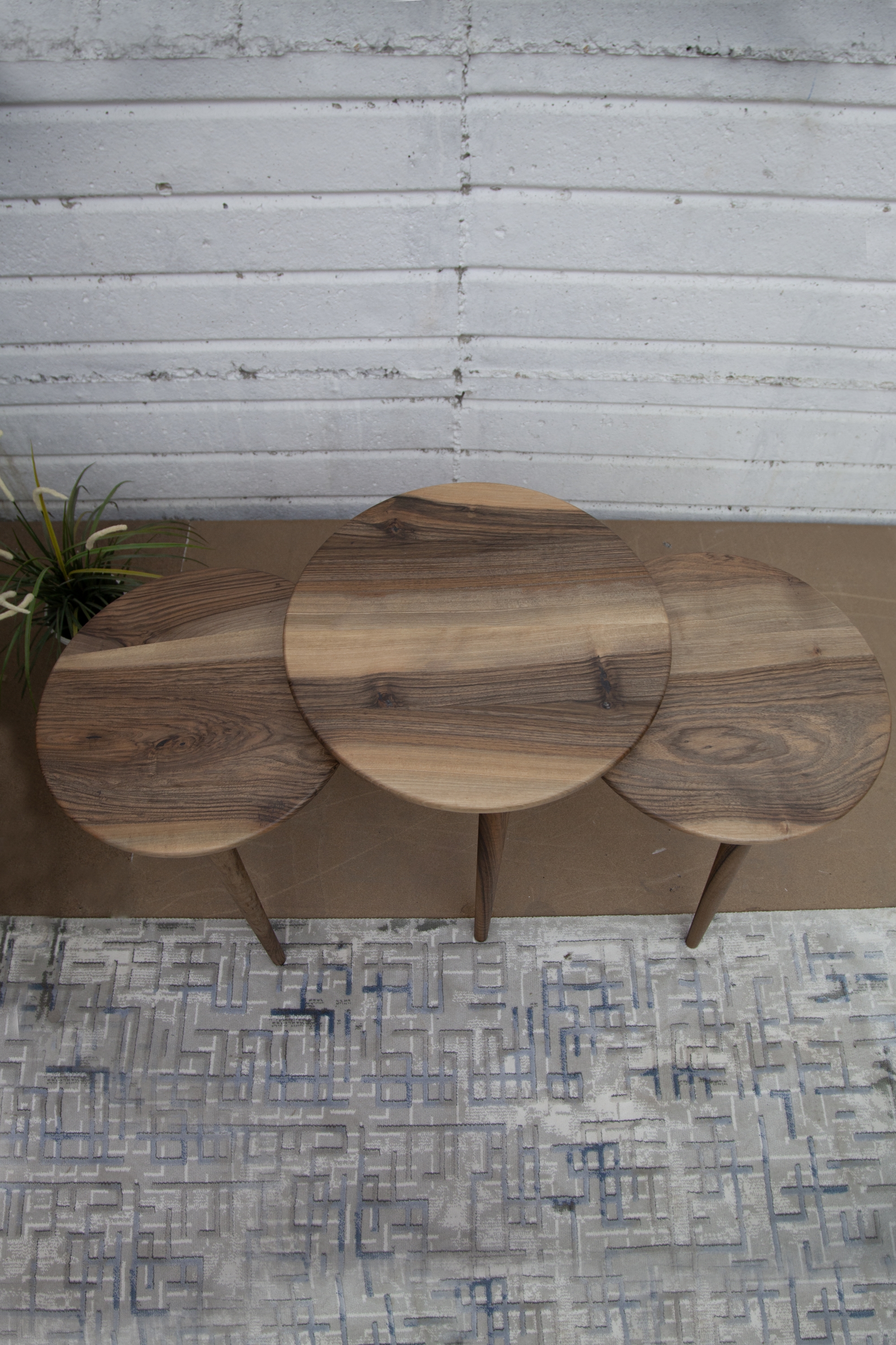Ceviz Yuvarlak 3 lü Sehpa Takımı - Y01